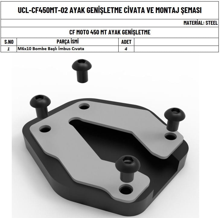 motorunuzun en iyi şekilde korumak ve sürüş keyfinizi artırmak için bu ayak genişletme mükemmel bir tercihtir. Sağlam yapısı ve şık tasarımı ile motorunuza hem estetik hem de fonksiyonel bir katkı sağlar.