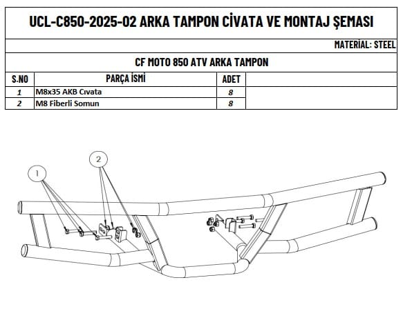 850 HIGHT ATV’nizi en iyi şekilde korumak ve sürüş keyfinizi artırmak için bu ön tampon koruma demiri mükemmel bir tercihtir. Sağlam yapısı ve şık tasarımı ile ATV’nize hem estetik hem de fonksiyonel bir katkı sağlar.