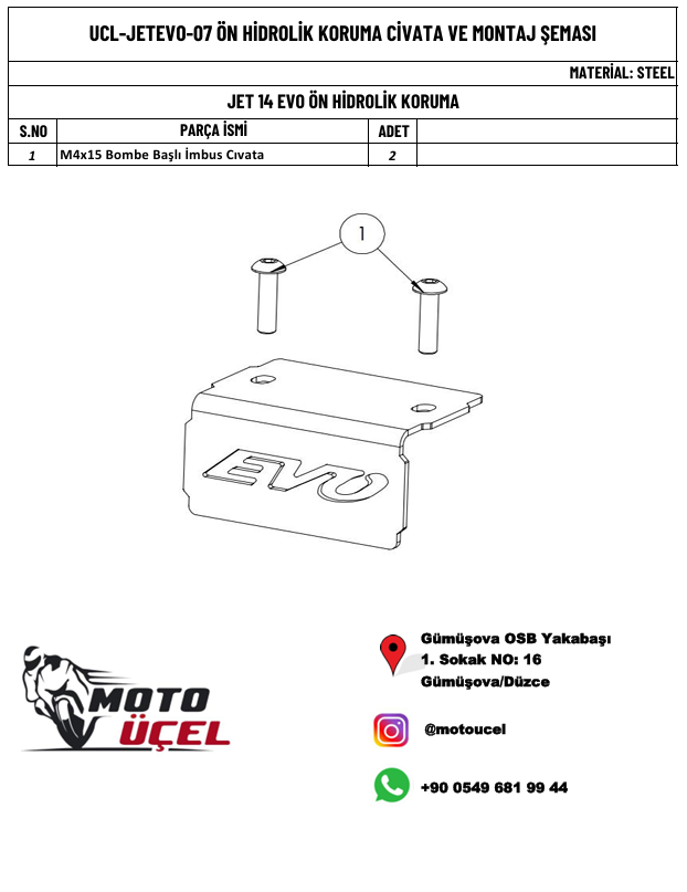 MOTO ÜÇEL Hidrolik koruma ST37 Metal sac malzemedir. Bağlantı aparatları ürün ile birlikte gönderilir.