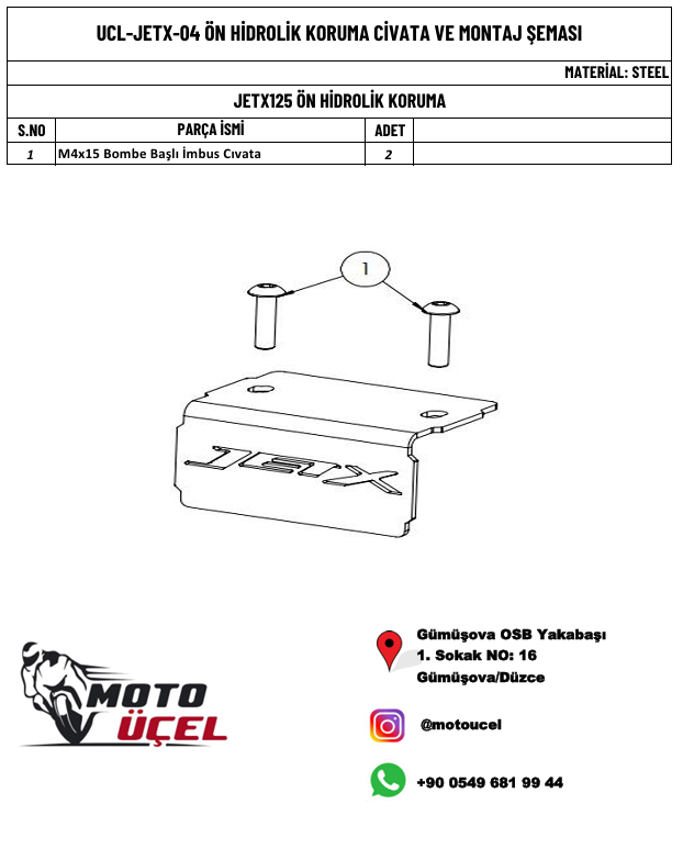 MOTO ÜÇEL Hidrolik koruma ST37 Metal sac malzemedir. Bağlantı aparatları ürün ile birlikte gönderilir.