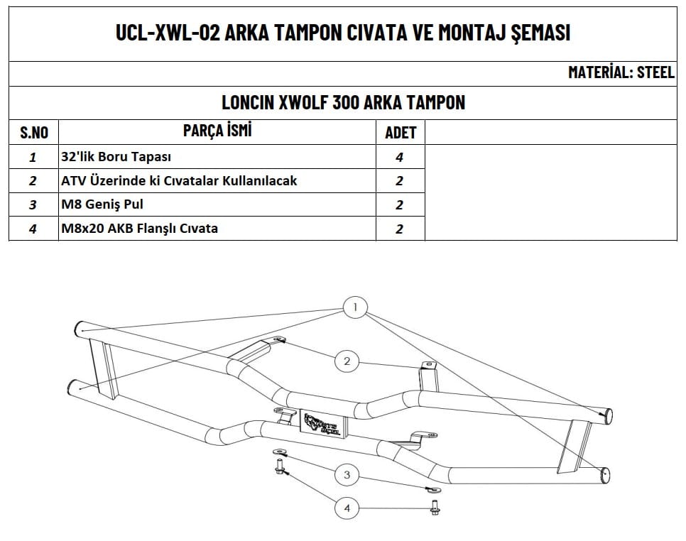 LONCIN XWOLF 300 ATV’nizi en iyi şekilde korumak ve sürüş keyfinizi artırmak için bu arka tampon koruma demiri mükemmel bir tercihtir. Sağlam yapısı ve şık tasarımı ile ATV’nize hem estetik hem de fonksiyonel bir katkı sağlar.