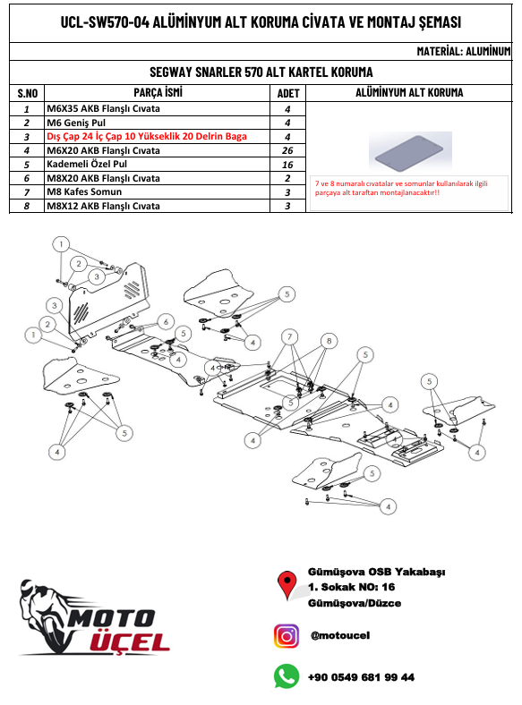ATV’nizin güvenliğini ve dayanıklılığını artırmak için tasarlanmış olan bu alt koruma, zorlu arazi koşullarında maksimum koruma sağlar. Yüksek kaliteli alüminyum malzemeden üretilmiştir, darbelere ve zorlu doğa şartlarına karşı üstün direnç gösterir.